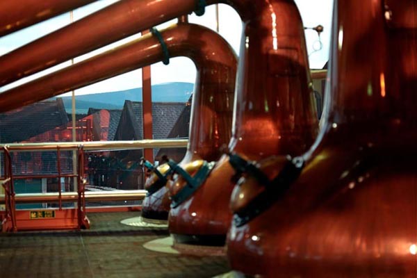 麦卡伦的小型蒸馏器是 Speyside 小型蒸馏器。其独特的尺寸和形状使酒与铜接触面积大,有助于浓缩(新酒)并散发出浓郁、甜美、醇厚的味道,这是麦卡伦的特色。这种蒸馏器共有 24 个,全部由铜制成,每个初始可容纳 3,900 升威士忌。